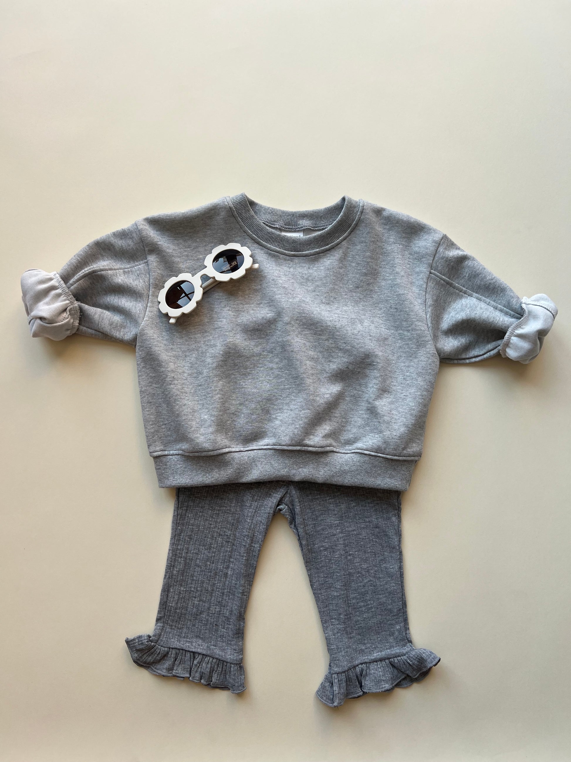 Bebe rib frill pants - grey melange