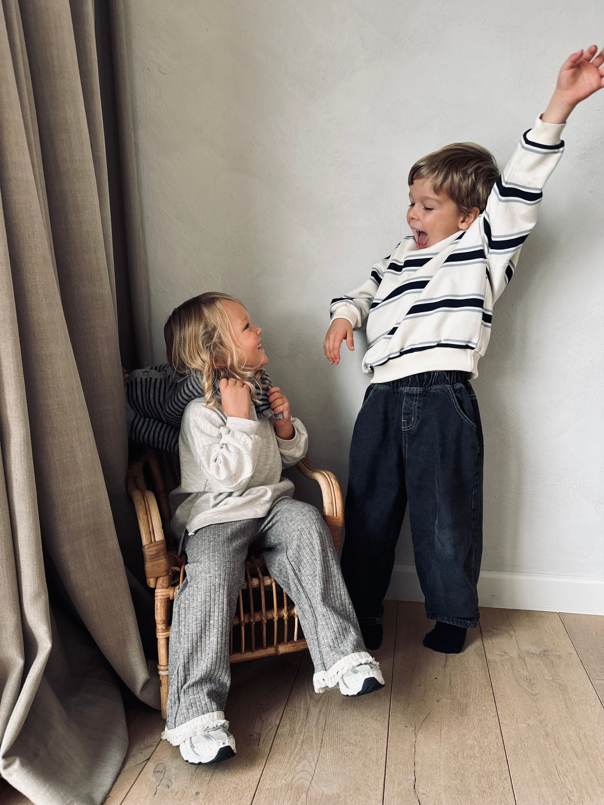 Snuggle your little one into our delightful 'Dotti stripes sweater'! This cozy sweater features a fun, classic striped design and is available in two beautiful shades: soft Cream or rich Wine red. It's the perfect comfortable layer for school days, weekend adventures, or just relaxing at home. Warmth meets playful