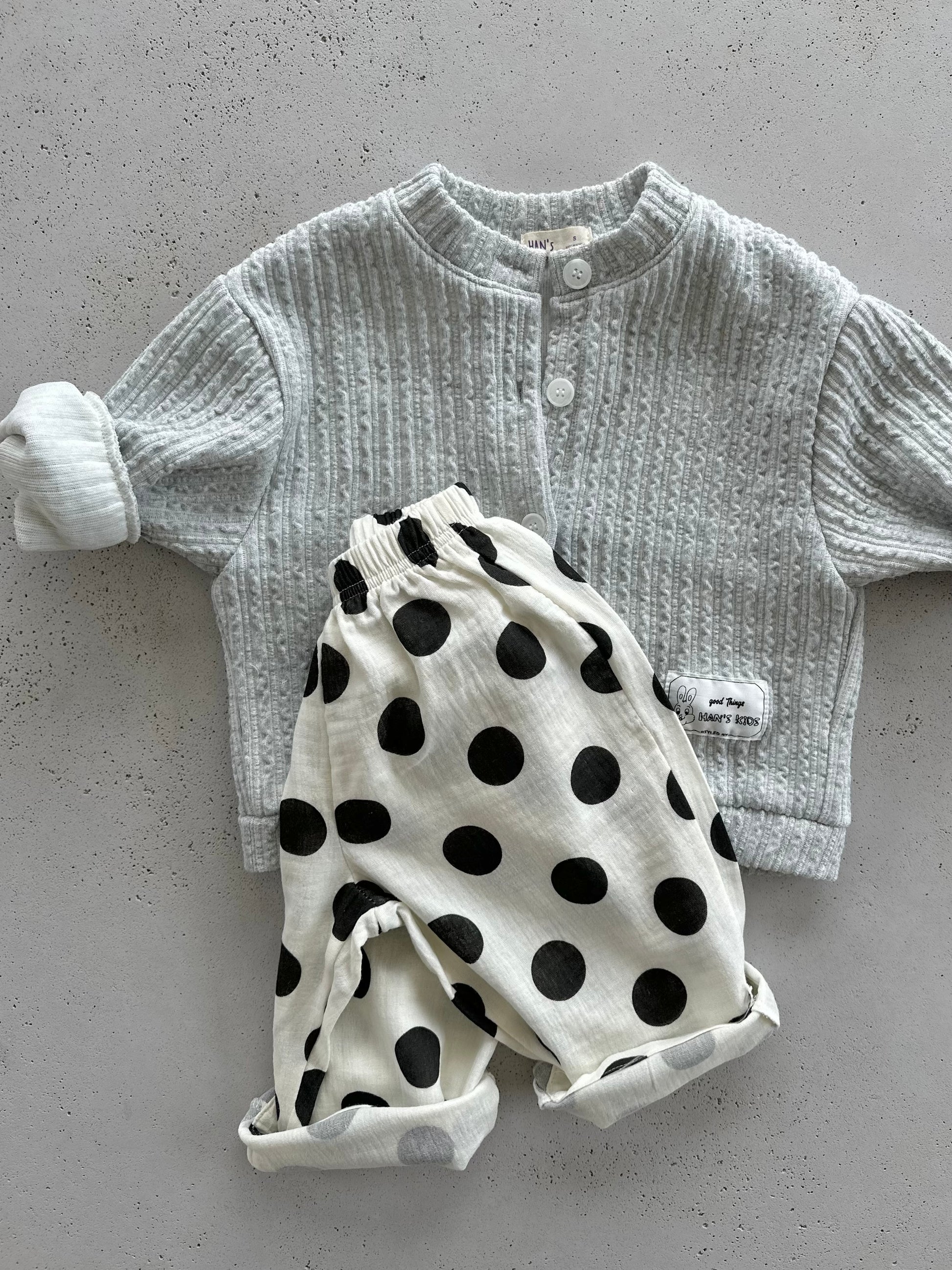 Layer up your little one in style with the Eline cardigan, a spring wardrobe must-have in soft white melange. This cozy knit piece is designed to keep your mini snug and comfortable while adding an effortless charm to any outfit. Perfect for those in-between weather days when an extra layer makes all the difference.