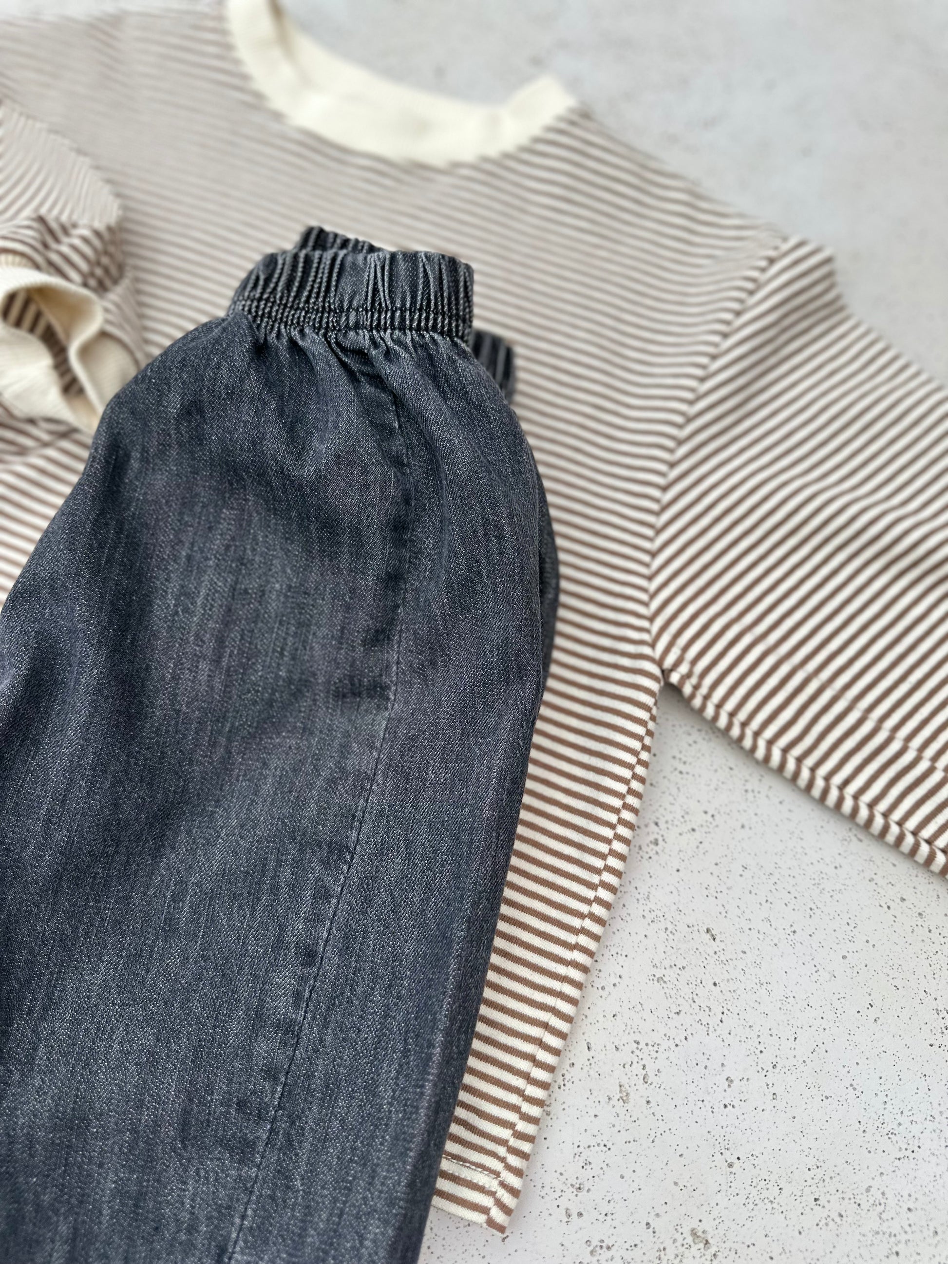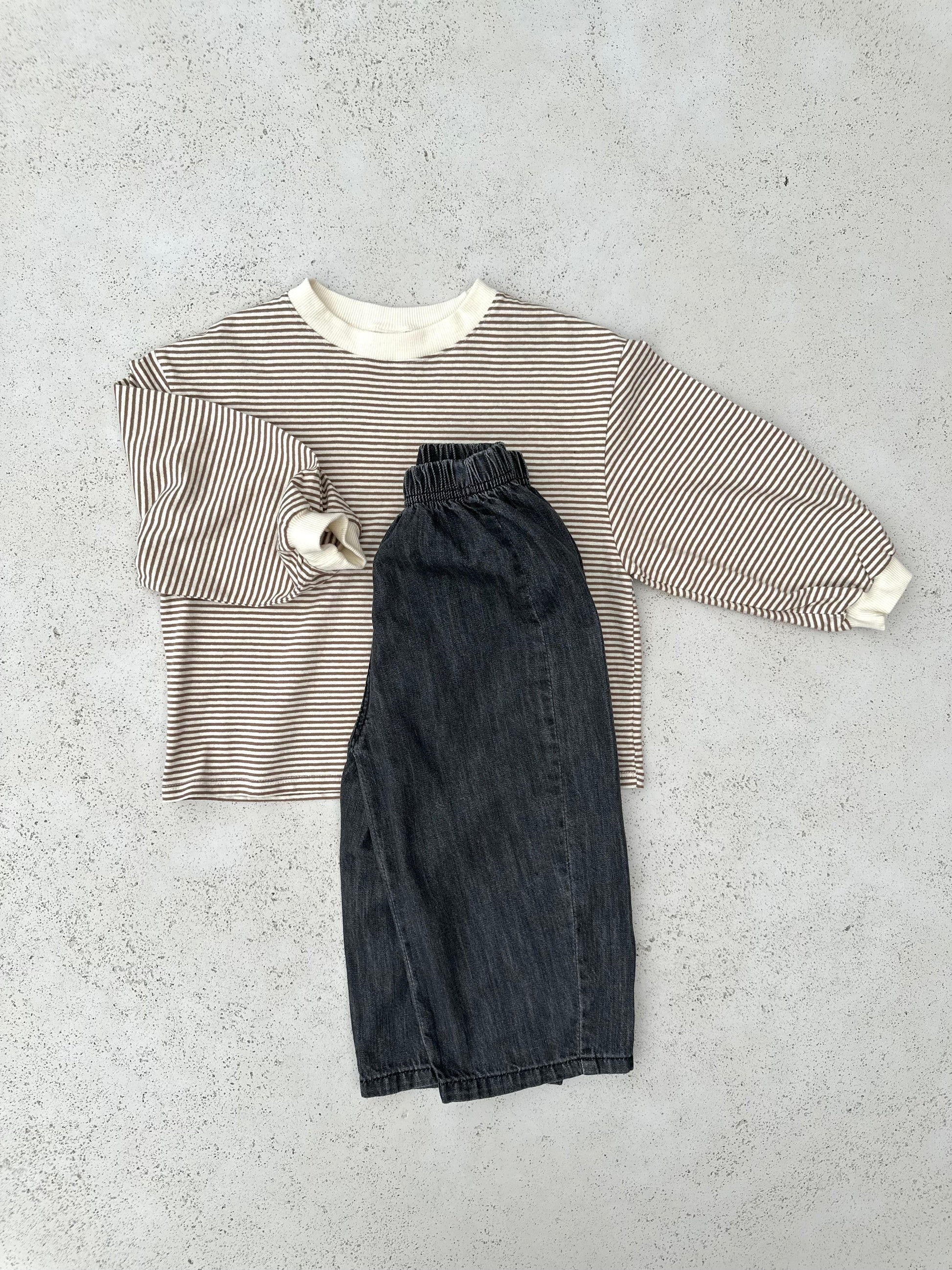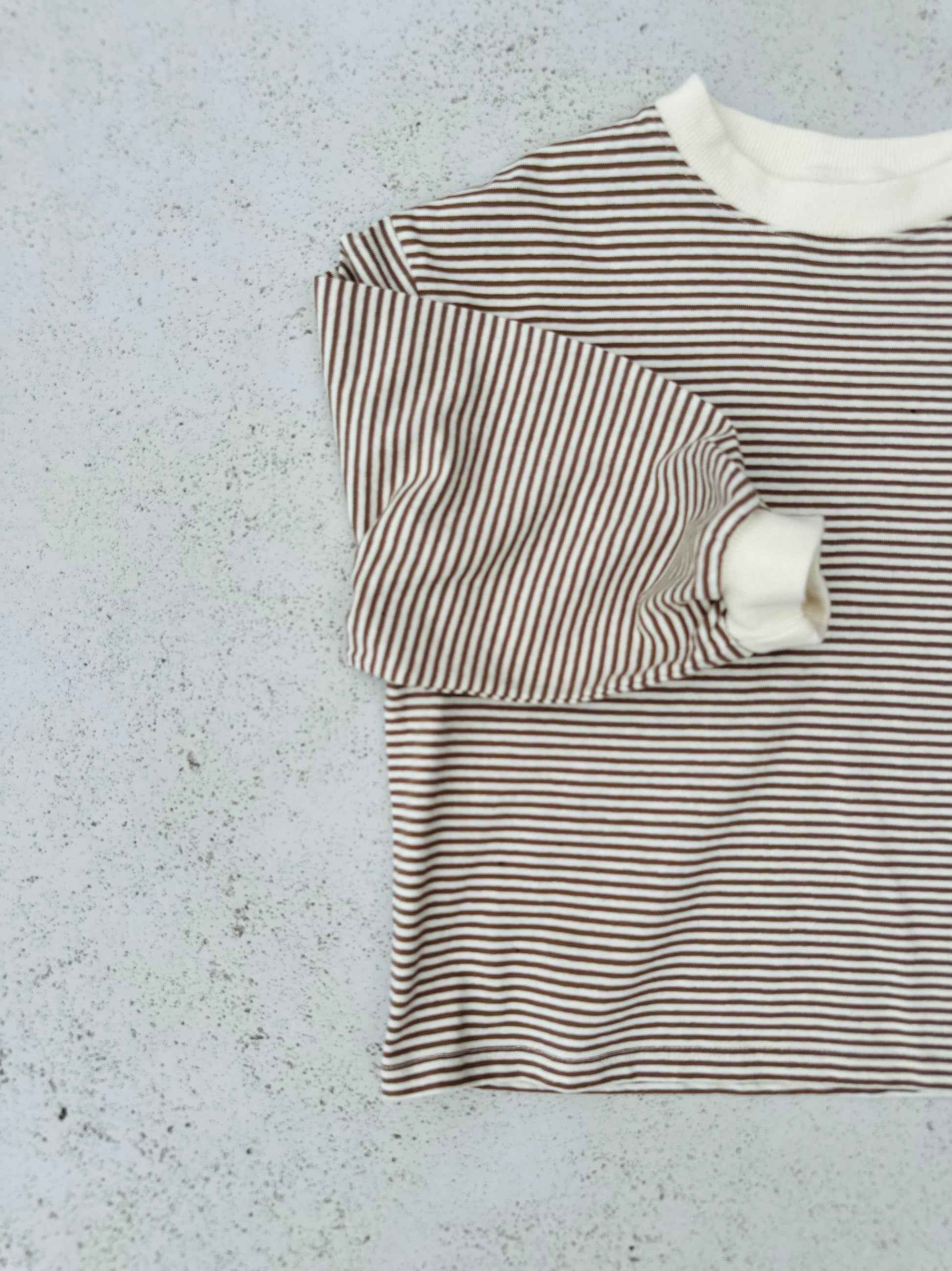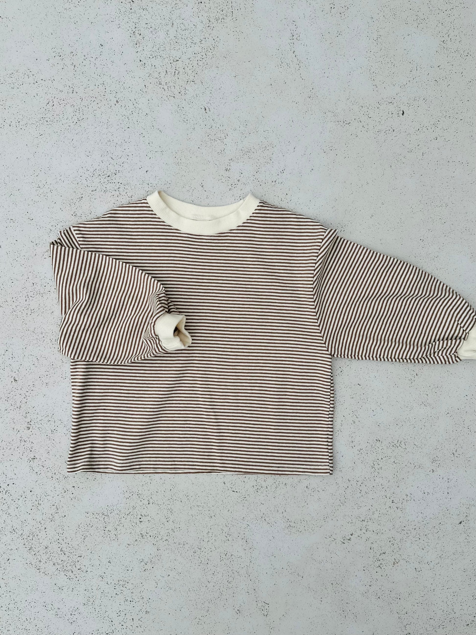 Stay comfy and cool in our Melmel loose sweatshirt. This effortlessly stylish piece features classic brown stripes with a clean ivory neck and cuffs, all in a relaxed, loose fit that's perfect for play. It’s an easy-to-wear favorite for every day.