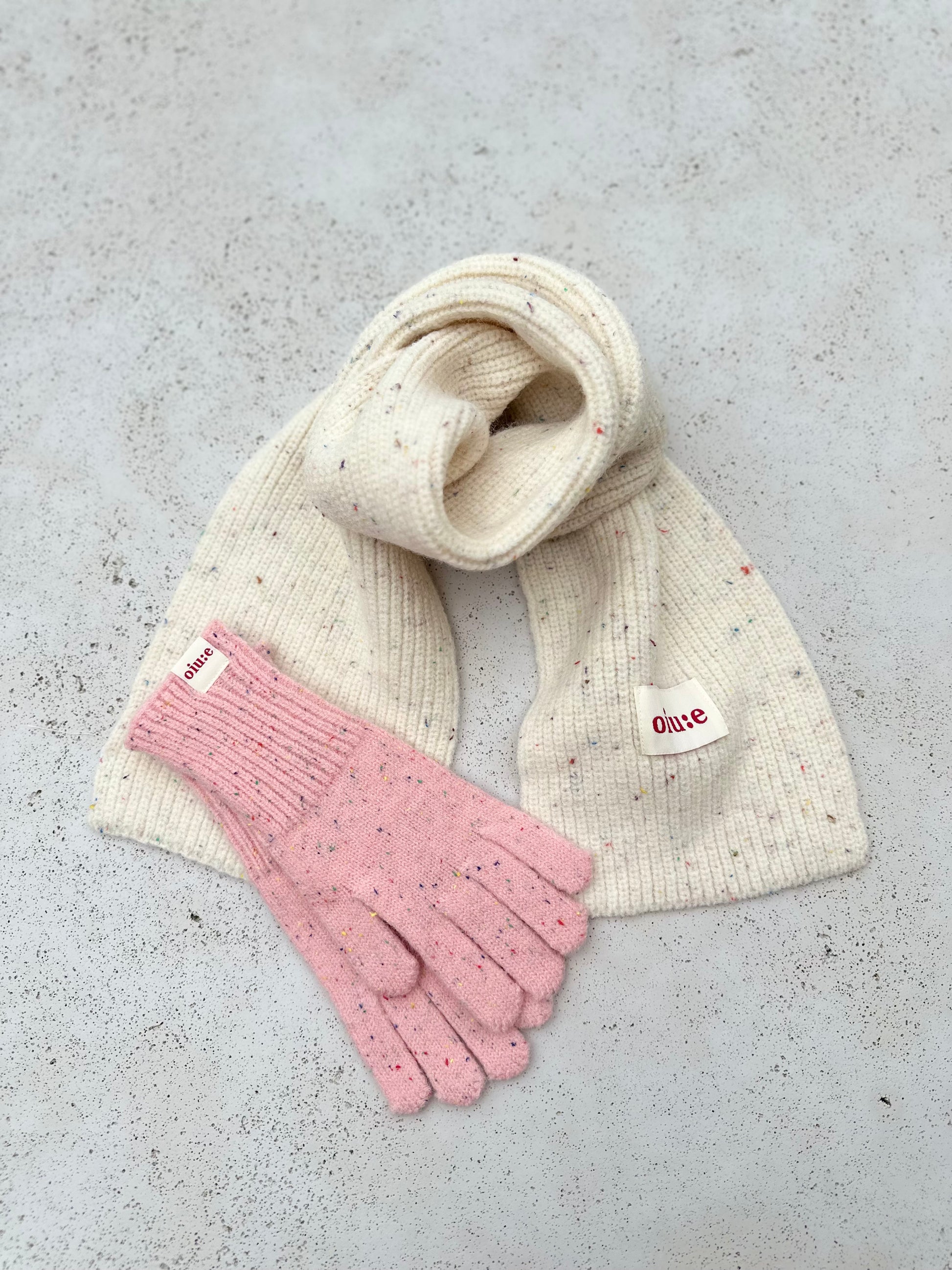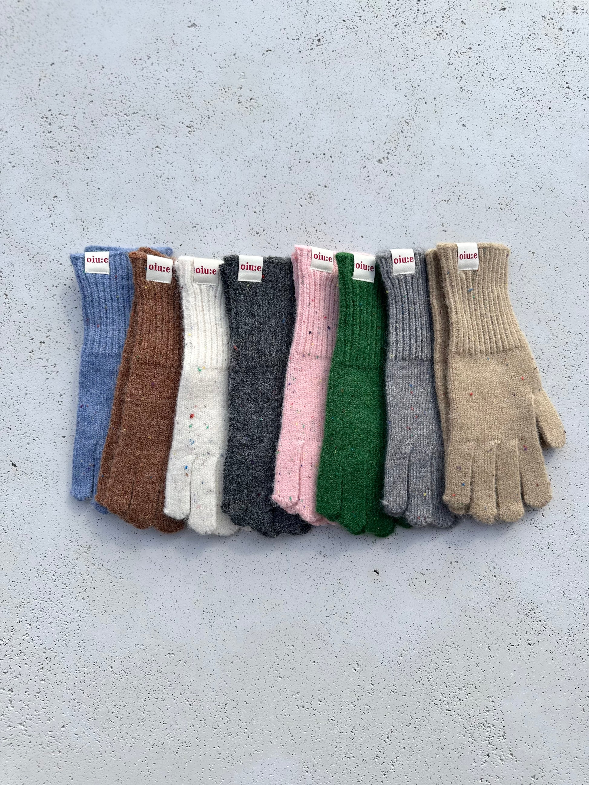 Beautiful knitted spickled gloves, made of a mix of wool, cotton and acryl. Available in different colors.