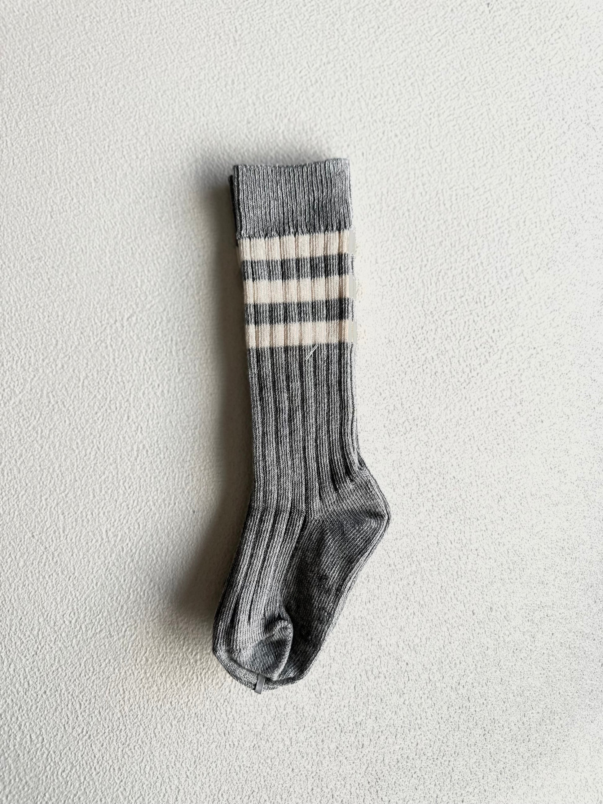 Cool knee socks in melange grey for warmth or layered elegance under skirts and dresses. Perfect for keeping legs cozy while maintaining a polished look. True to size fit.