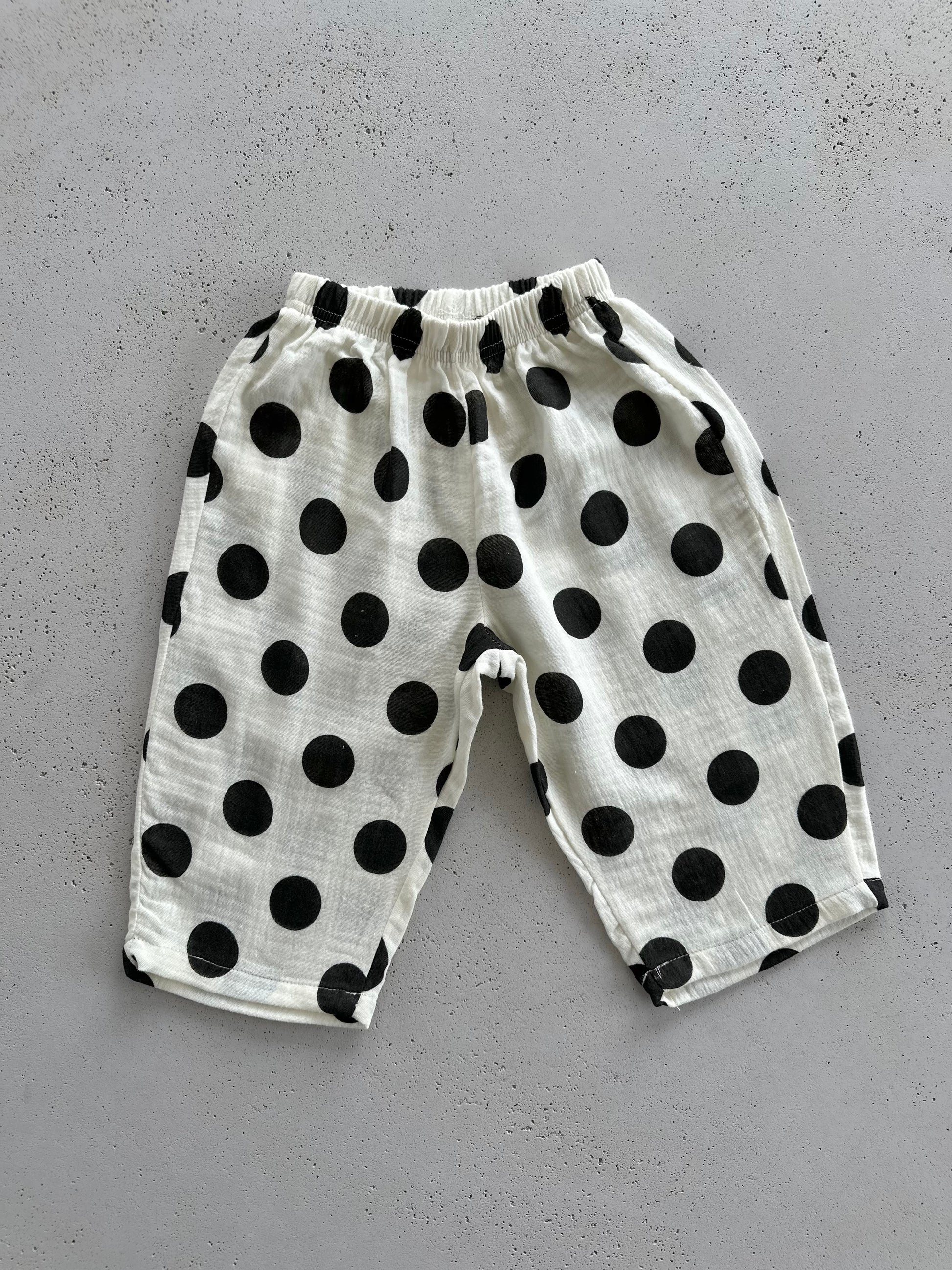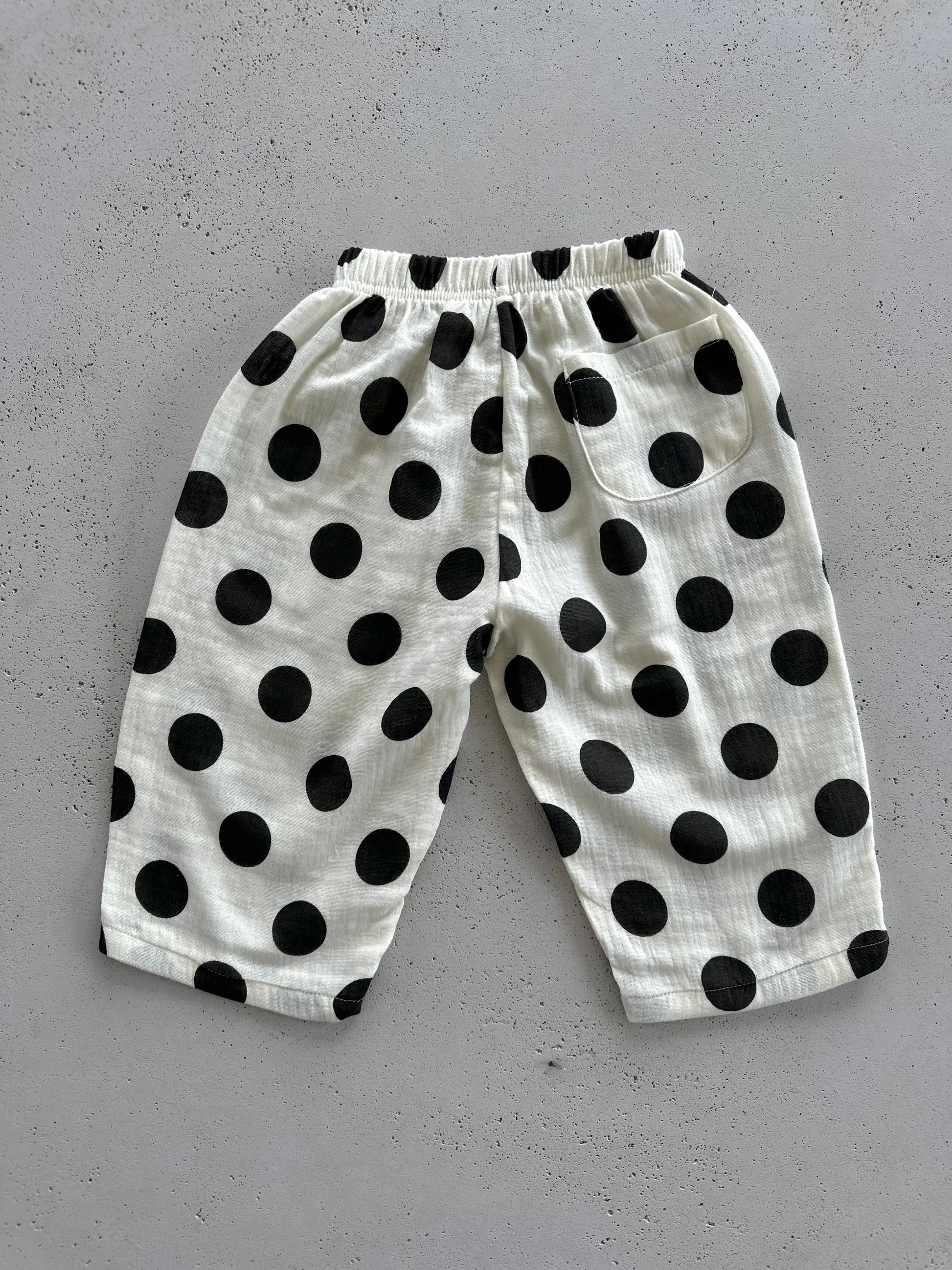 Elevate your little one's style with these charming Pine flowy pants featuring a sophisticated ivory base adorned with playful black dots. The relaxed, flowing silhouette makes dressing effortless while adding that perfect touch of whimsy to any outfit. A wardrobe essential that's both fun and refined.