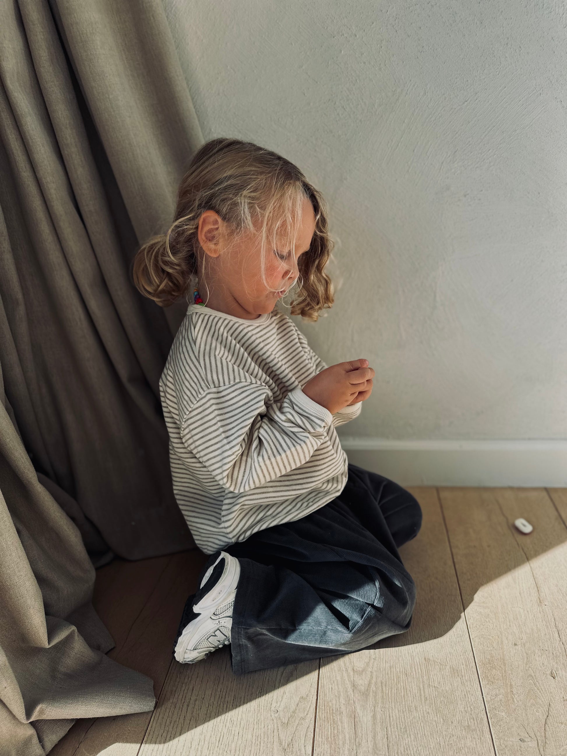 Relaxed and comfortable, these baggy rib pants are a must-have for your little one. The soft fabric make them perfect for going out on the weekends or playtime. Combine it with our Bangbang sweatshirts or sweaters and your good to go!